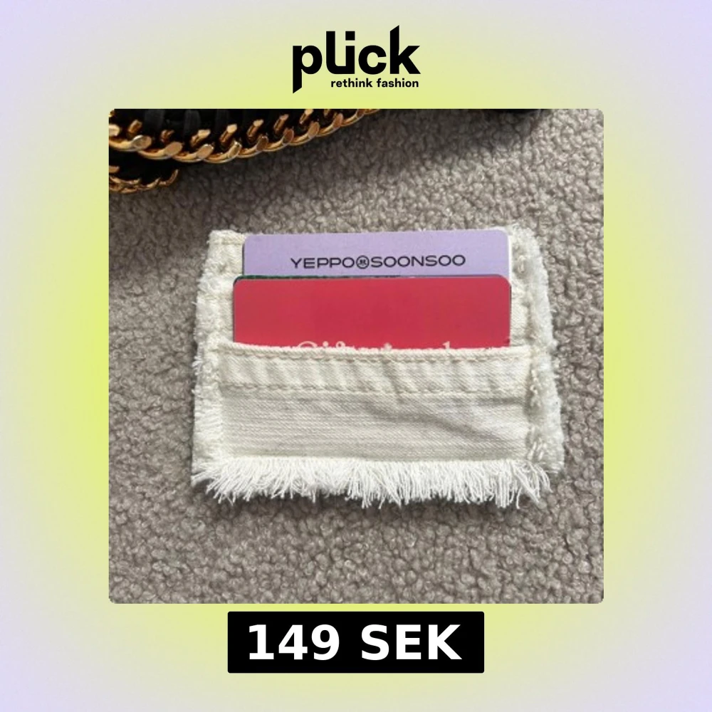 018 - Säljer en stilren vit kortficka med fransar runt kanterna. Perfekt för att hålla dina kort organiserade. Enkel och praktisk design. Betalning sker via swish
