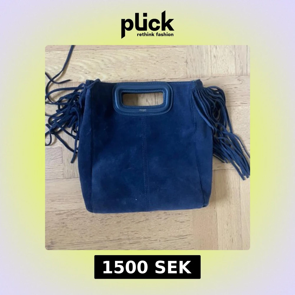 Snygg mörkblå handväska från Maje i mocka med fransar på sidorna💙 storleken är mellan😀