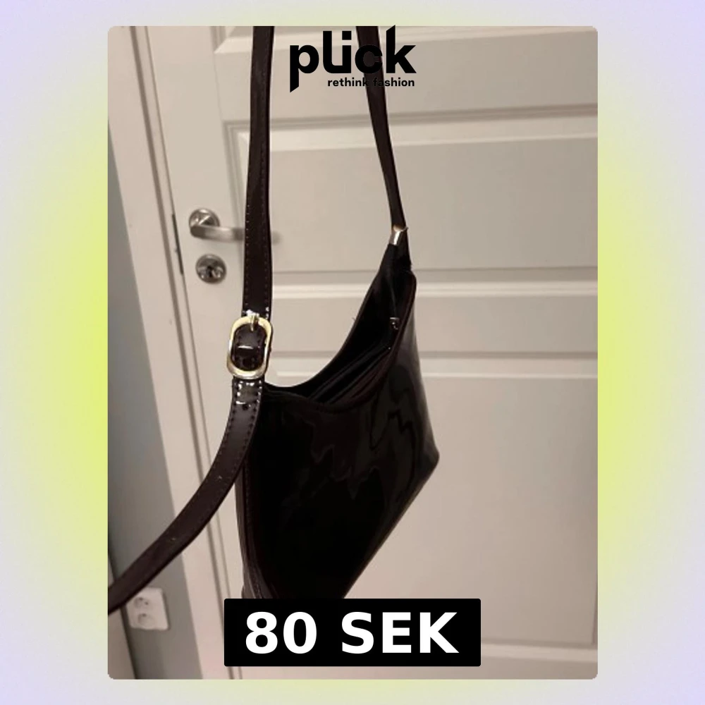 Snygg mörkbrun axelväska i glansigt skinn med justerbart axelband och guldfärgat spänne. Väskan har en enkel, stilren form och stängs med dragkedja. Perfekt storlek för det viktigaste och ger en trendig touch till din outfit.