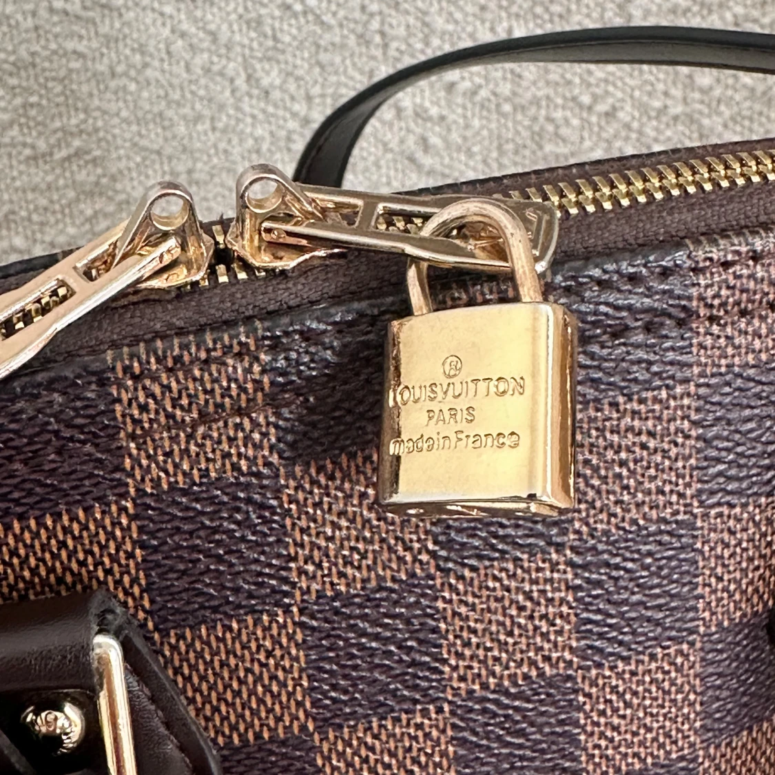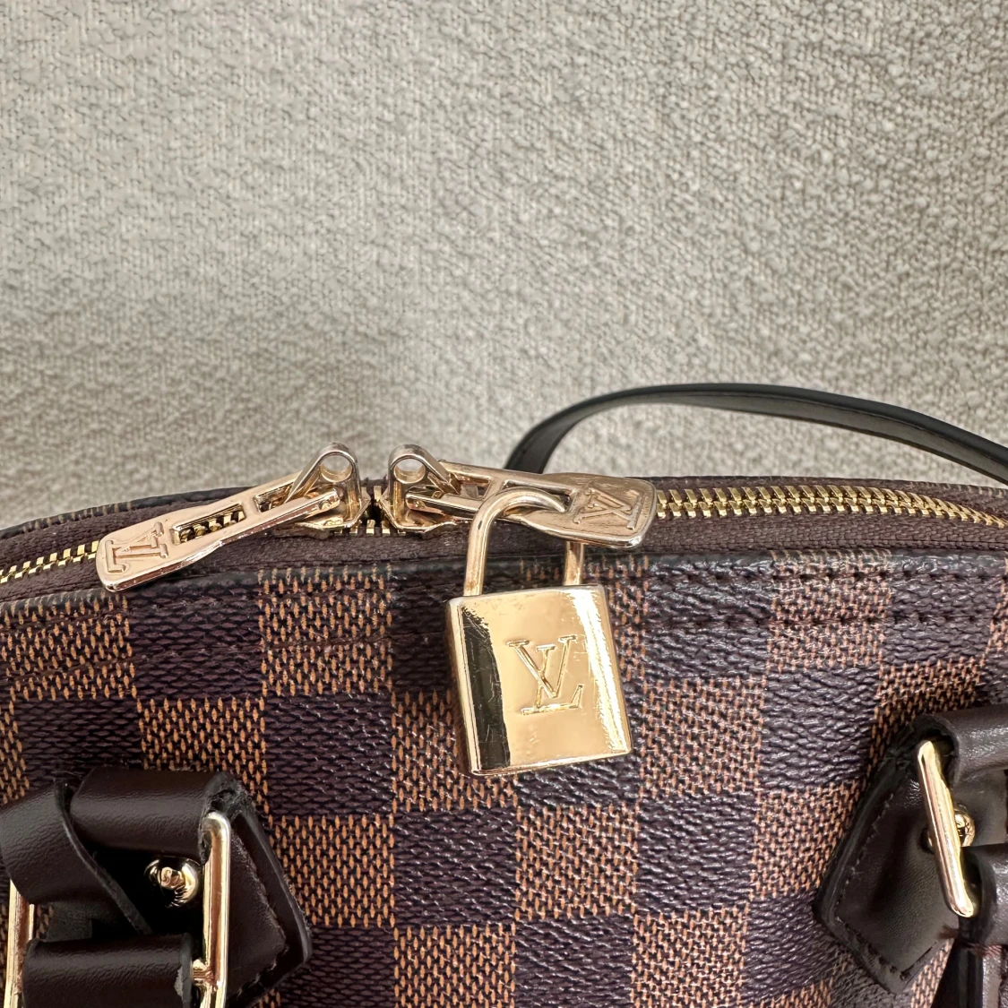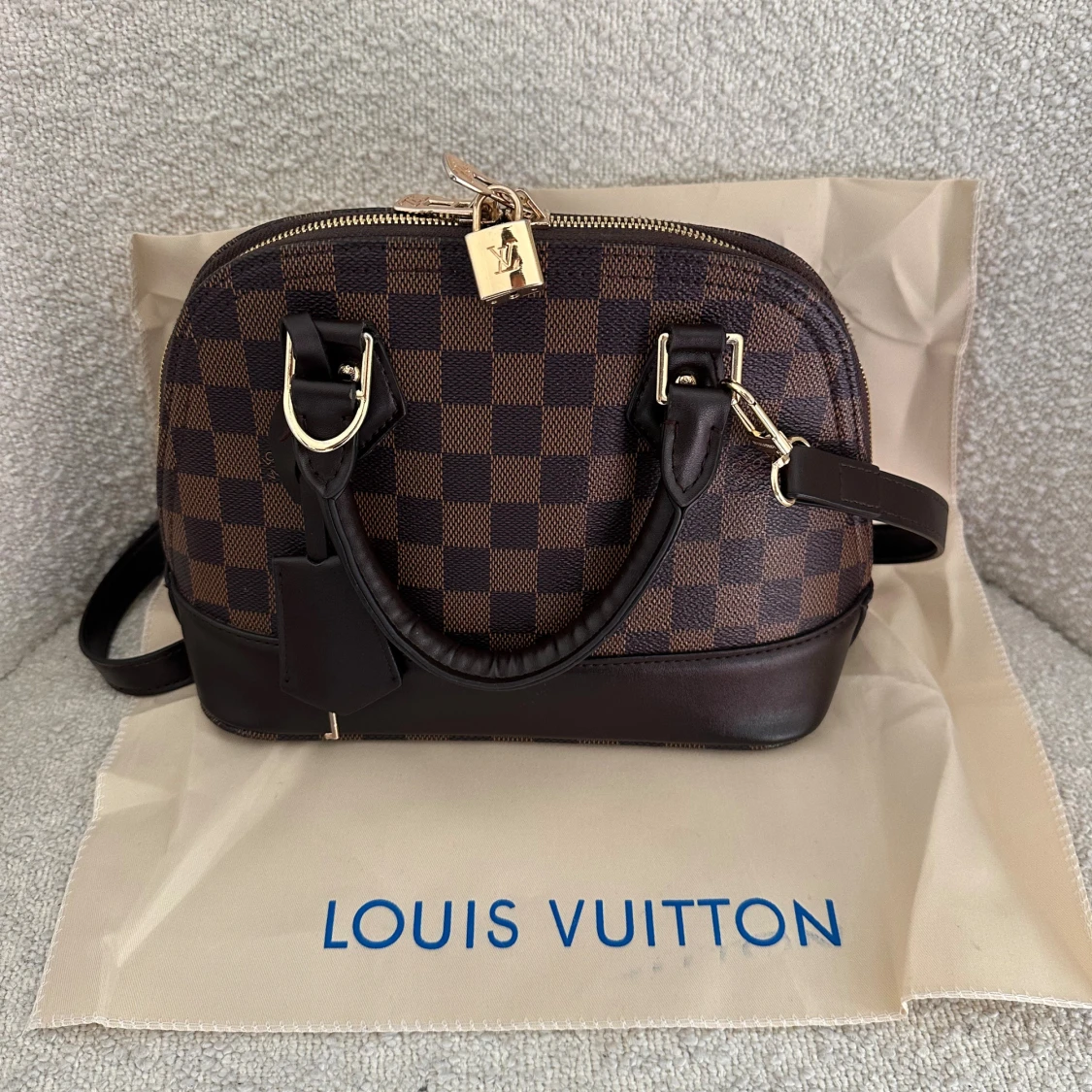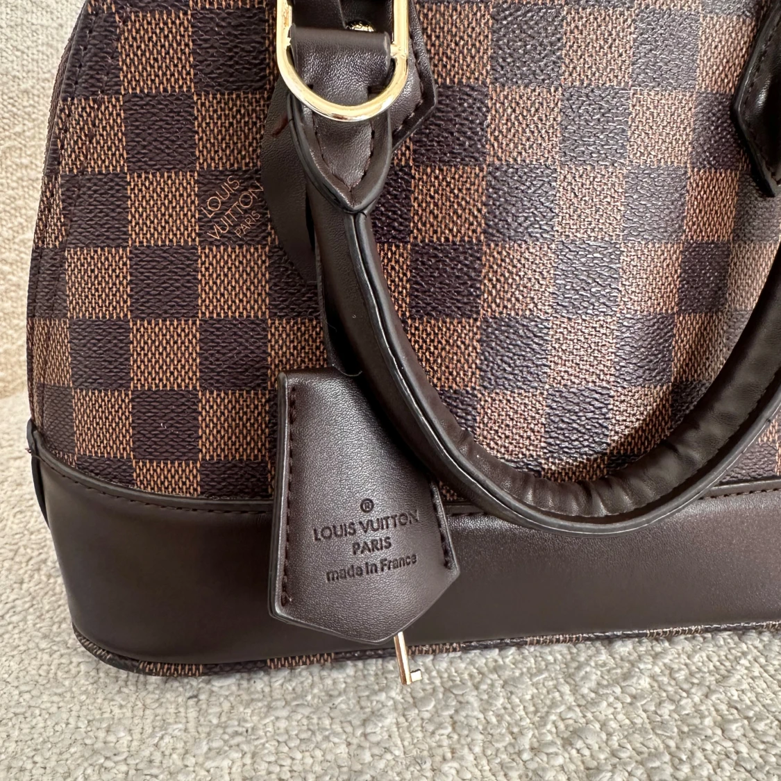 Snygg handväska i klassiskt brunt mönster. Väskan har guldfärgade metalldetaljer, dubbla handtag och avtagbar axelrem. Tillverkad i skinn och canvas med dragkedja och hänglås. Superfint skick men tyvärr kan dragkedjan vara lite trög när väskan är full. Inget kvitto, ni förstår varför det är billigt ✨🤎