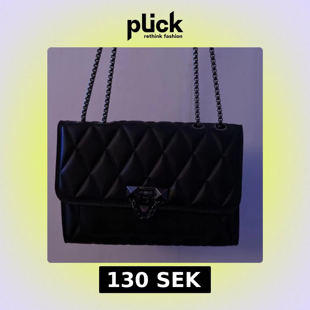 Snygg svart quiltad axelväska med kedjeaxelrem och ett elegant lås framtill. Perfekt för att ge din outfit en stilfull touch. Väskan har en klassisk design som passar till många tillfällen.
