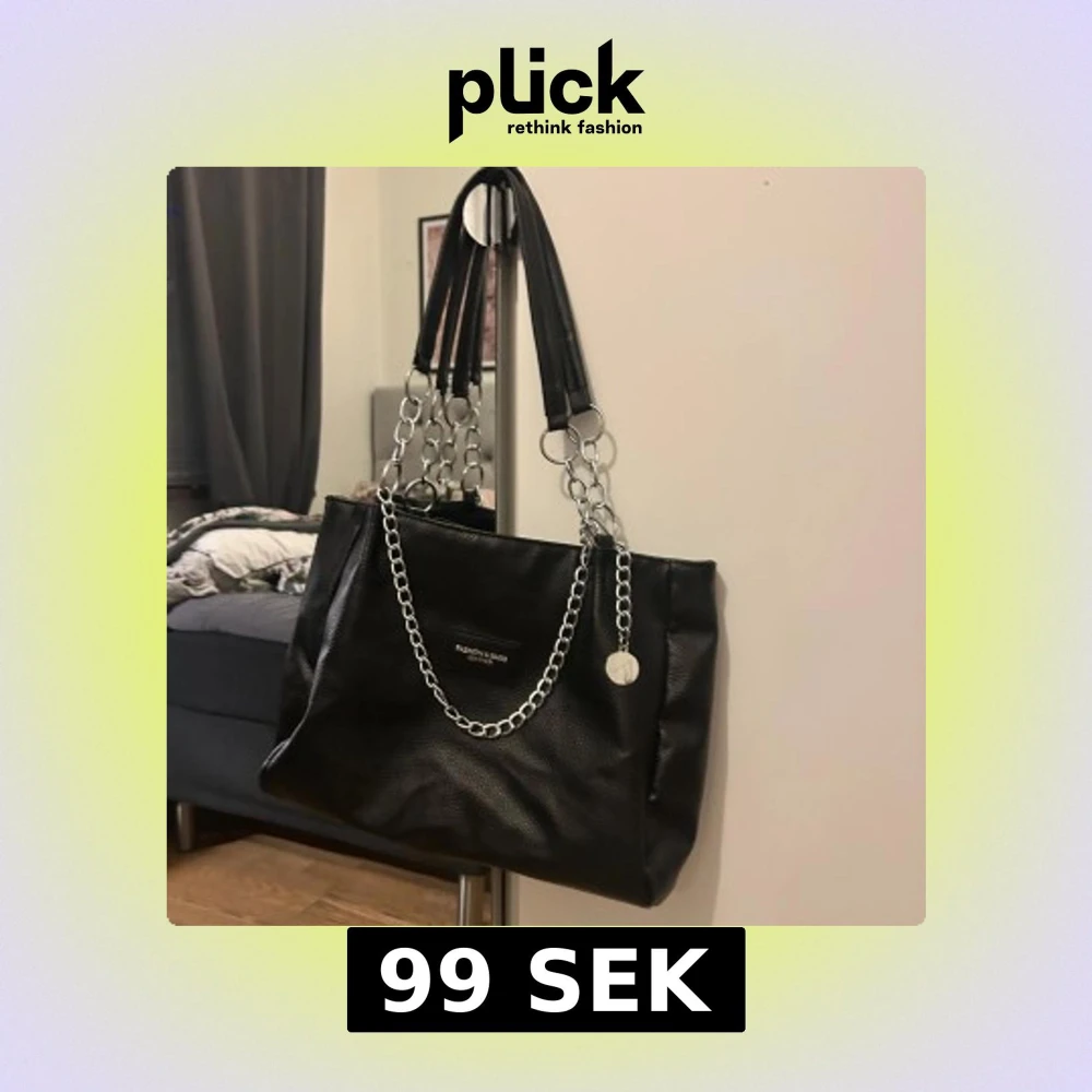 Stilren svart axelväska från Fashion & Bags i skinnimitation med grova silverfärgade kedjor och dubbla handtag. Väskan har rymligt fack med dragkedja och flera innerfickor. Perfekt för dig som gillar en edgy look och vill ha plats för allt du behöver.