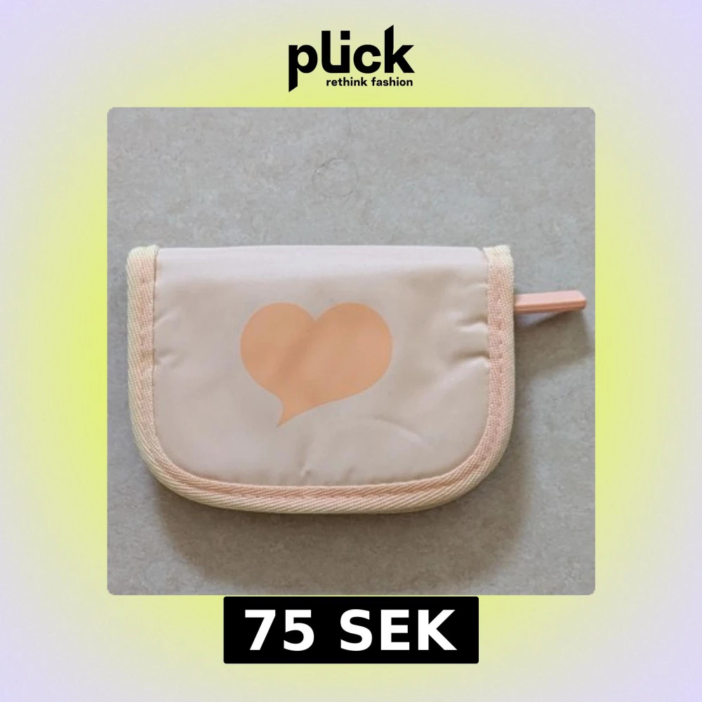 HELT OANVÄND NECESSÄR. Söt liten beige necessär med persikofärgade hjärtan på utsidan och praktisk dragkedja. Insidan har meshficka och fack för förvaring. Perfekt storlek för att ha med sig överallt.