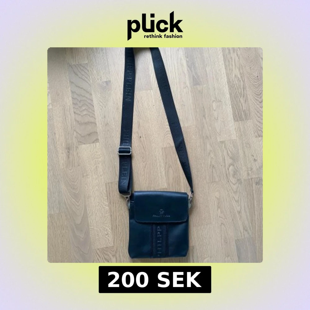Snygg svart axelväska från Philipp Plein med justerbart band där loggan är broderad. Väskan har lock med magnetstängning och diskreta detaljer framtill. Perfekt storlek för mobil, plånbok och andra essentials.