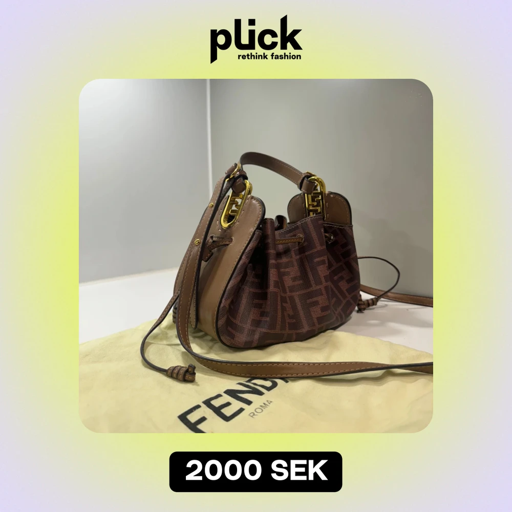 Säljer en superfin brun handväska från Fendi med deras ikoniska logotypmönster. Väskan har gulddetaljer och justerbar axelrem. Perfekt för både vardag och fest! 👜✨