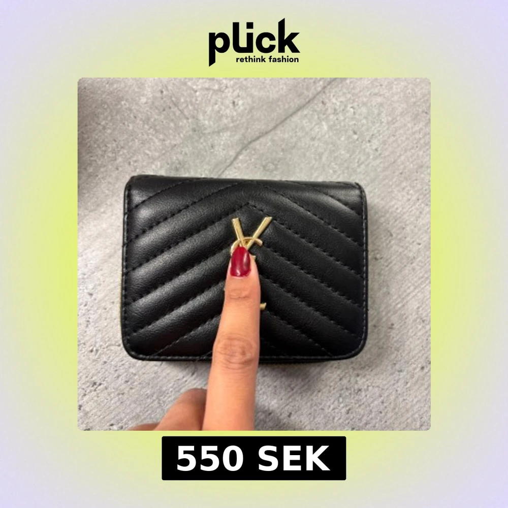 Svart plånbok i quiltad design med guldiga detaljer och YSL-inspirerad logga framtill. Plånboken har dragkedja runt myntfacket, flera kortfack och ett fönster för ID. Tillverkad i skinnimitation och har stilren look. Skriv för fler bilder!