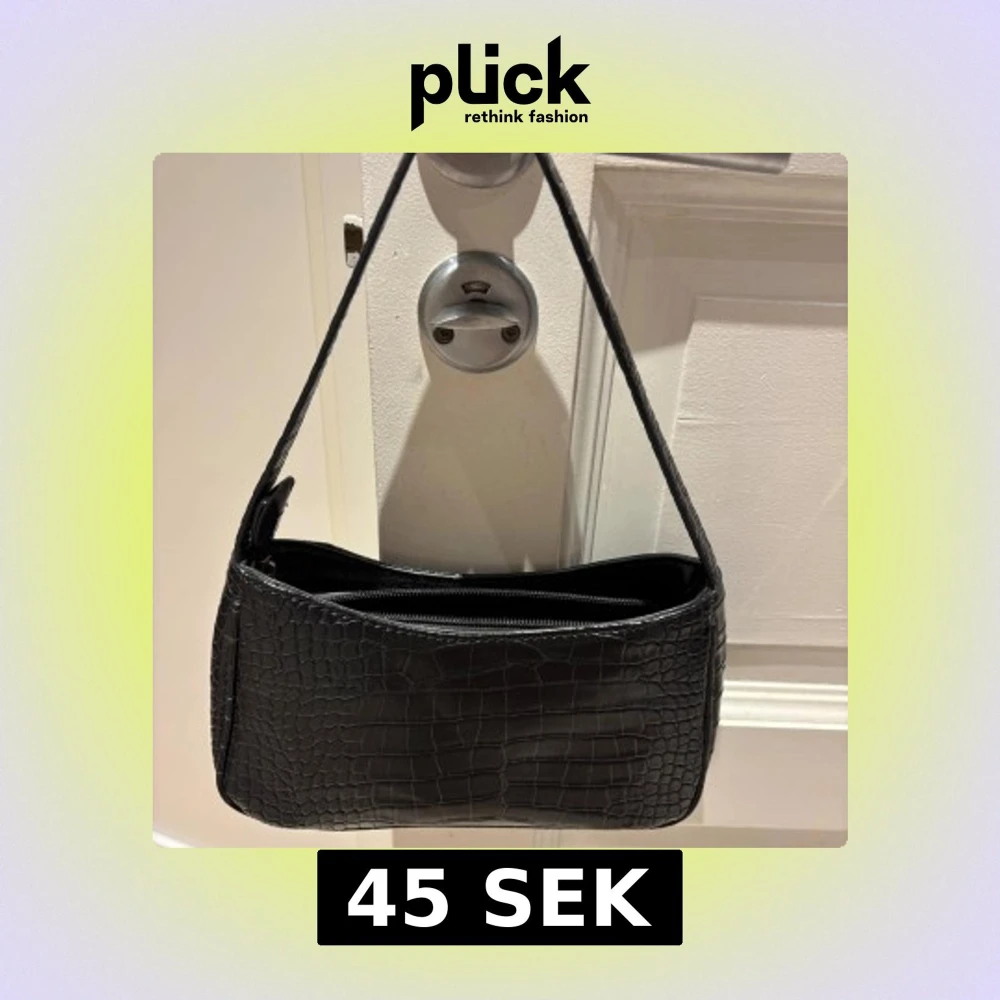 Snygg svart axelväska med krokopräglat mönster och dragkedja upptill. Perfekt storlek för det viktigaste och har en stilren, rektangulär form. Väskan har ett trendigt och minimalistiskt uttryck som passar till många outfits.