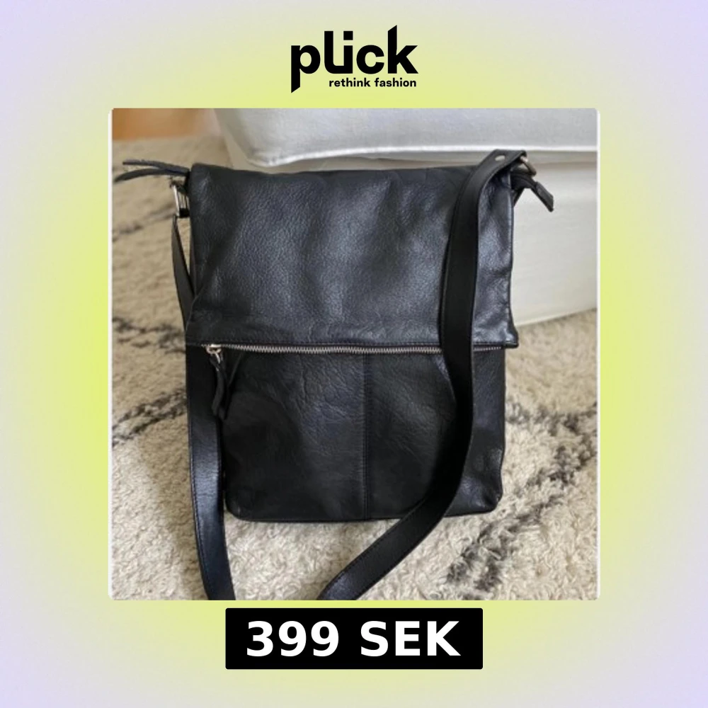 Snygg svart axelväska i mjukt skinn med justerbart axelband. Väskan har ett stilrent och minimalistiskt utseende, stängs med dragkedja och har en vikbar överdel. Perfekt storlek för att få plats med allt du behöver till vardags.