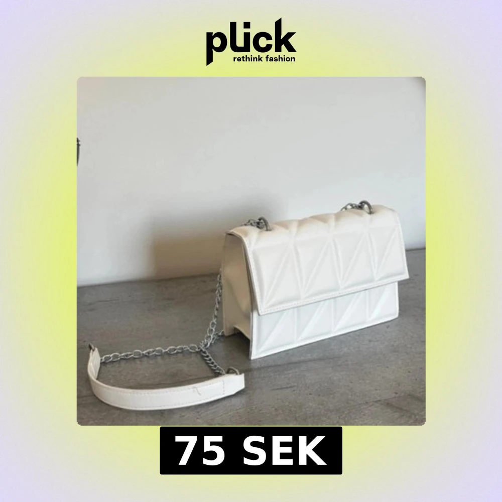 Snygg vit axelväska i quiltad design med geometriskt mönster. Väskan har en silverfärgad kedjerem och är tillverkad i skinnimitation. Perfekt storlek för det viktigaste och ger en clean look till din outfit.