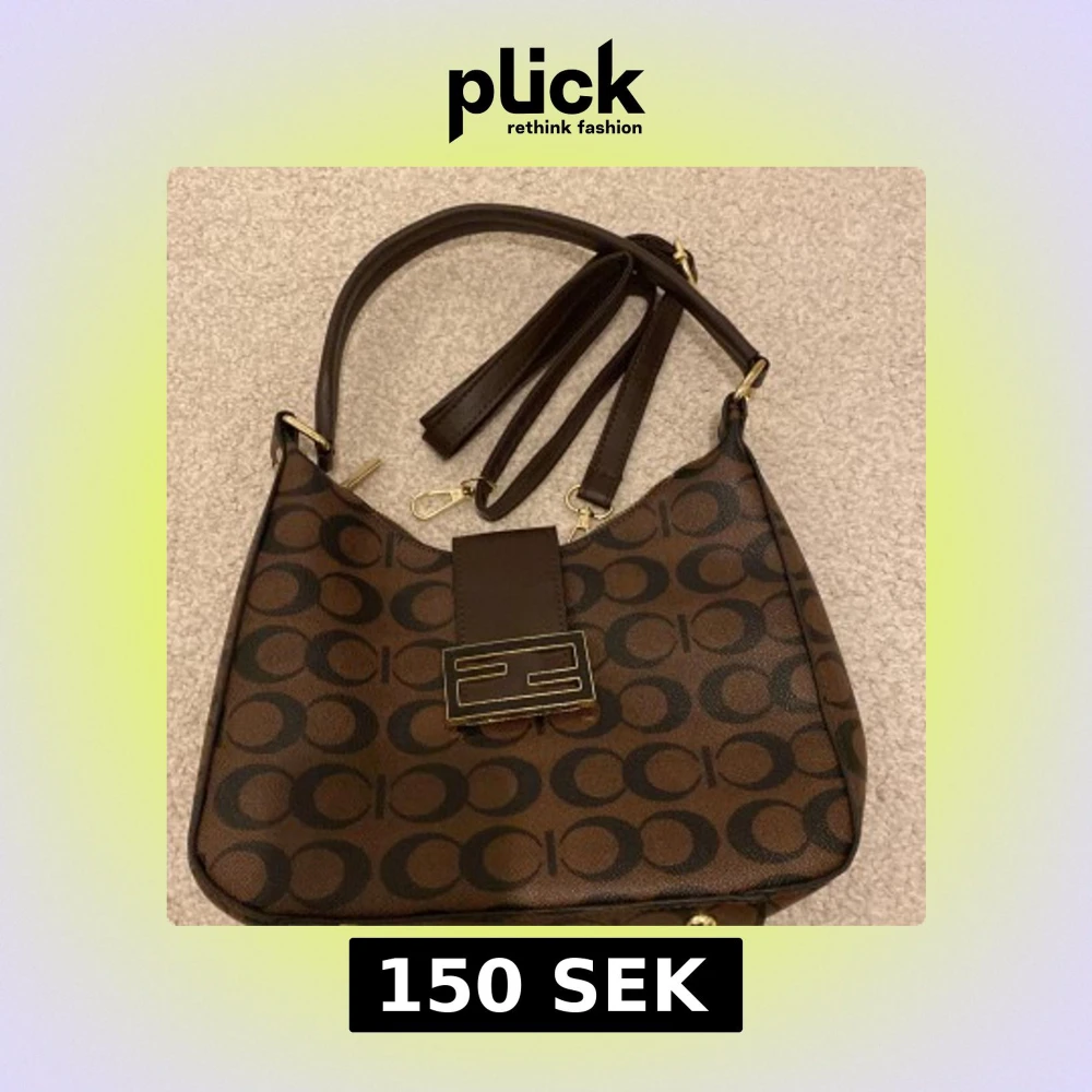 Snygg brun axelväska med ett stilrent mönster och gulddetaljer. Väskan har en praktisk dragkedja och en justerbar axelrem. Perfekt för att bära dina dagliga nödvändigheter med stil.