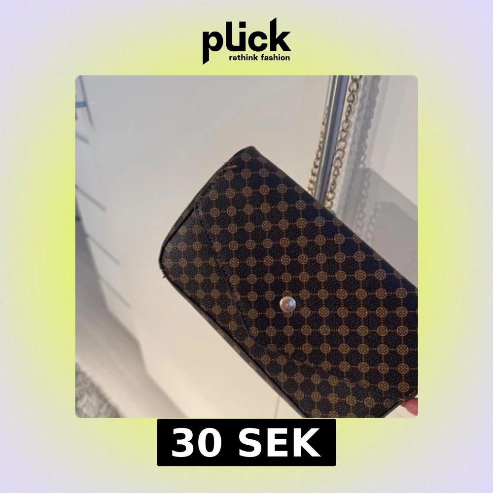 Snygg kuvertväska i brunt och svart med rutigt mönster. Man kan även göra väskan kort till en alexväska