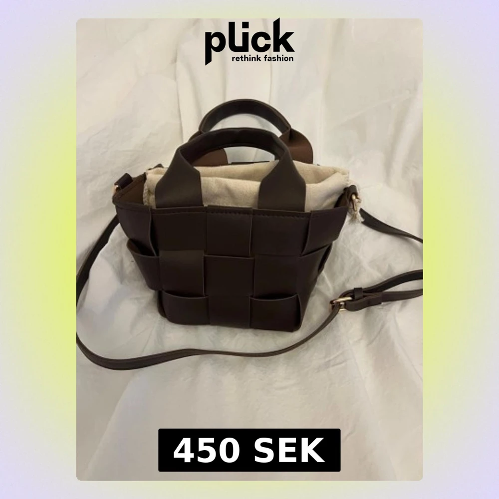 Säljer en snygg brun axelväska i flätad skinnimitation med avtagbar axelrem och handtag. Väskan har en innerpåse i beige canvas med dragsko. Perfekt storlek för det viktigaste och stilren design som sticker ut.