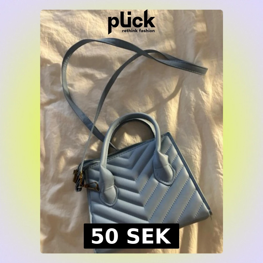 Säljer en ljusblå quiltad axelväska med både handtag och lång axelrem. Väskan har ett snyggt sicksackmönster och stängs med dragkedja. Perfekt storlek för det viktigaste och ger en fräsch touch till din outfit.