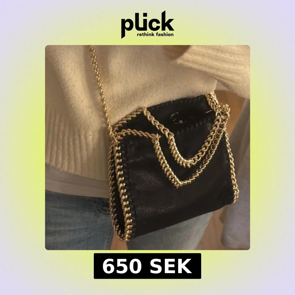 Aldrig använd. Liknar Stella McCartney. Snygg svart axelväska med guldkedja som detalj. Väskan har en elegant design med kedjor som ger en lyxig känsla. Perfekt för att lyfta vilken outfit som helst.