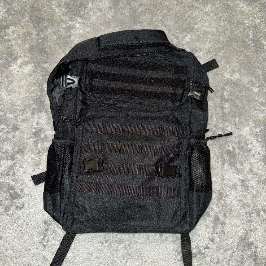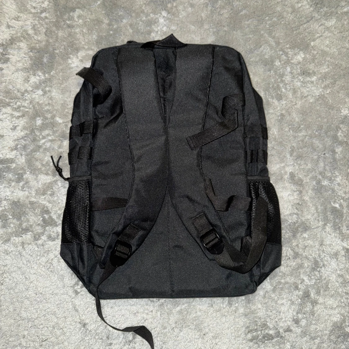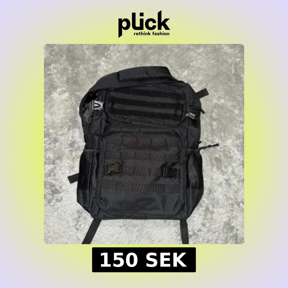 En svart ryggsäck i slitstark syntet med flera fack, justerbara remmar och praktiska spännen framtill. Utrustad med meshfickor på sidorna och MOLLE-system för extra utrustning. Perfekt för dig som gillar funktionell och stilren design. HELT NY