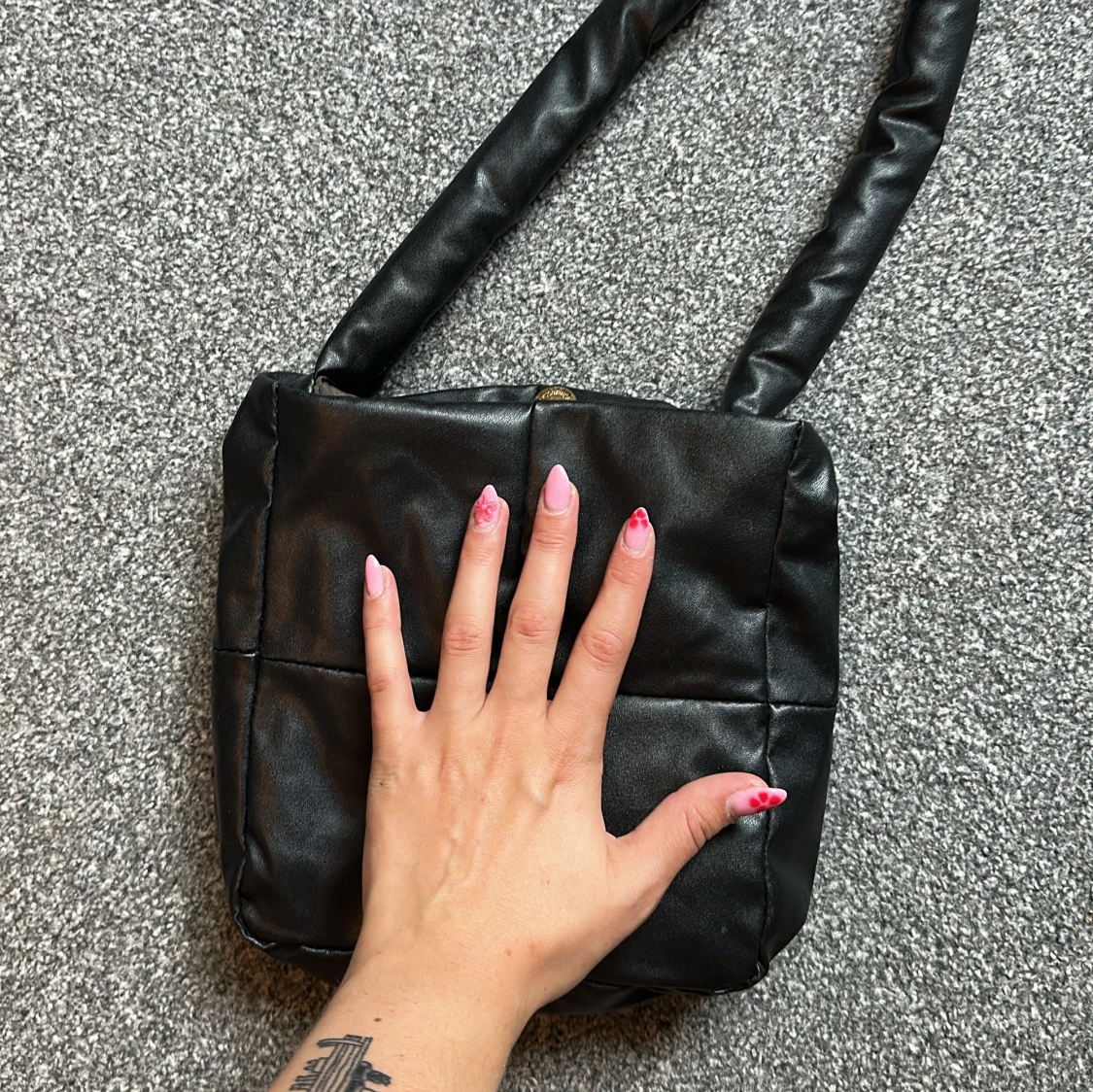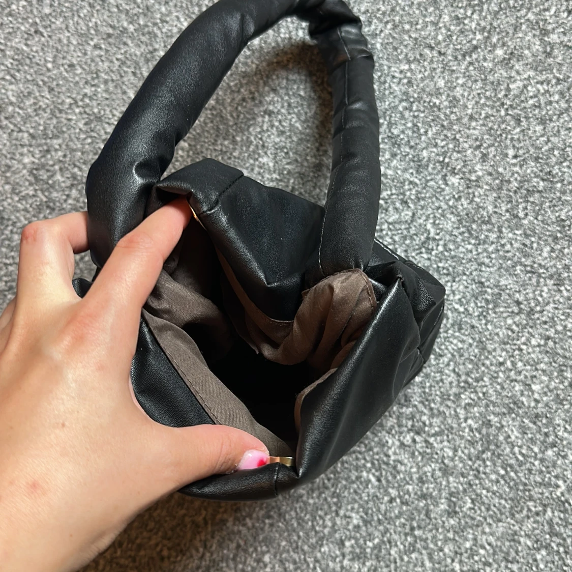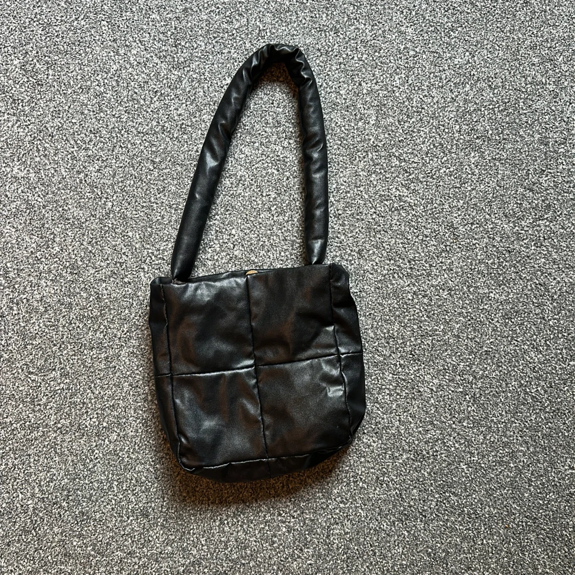 Säljer en svart quiltad axelväska med vadderat handtag och rutmönstrad design. Väskan är i skinnimitation och har ett rymligt fack med dragkedja upptill. Perfekt storlek för mobilen, plånboken och lite till. Enkel och stilren look som passar till det mesta.
