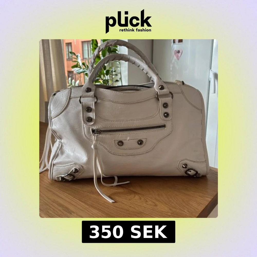 Säljer en vit handväska från design by Amor i skinn med coola metalldetaljer, dragkedja framtill och flätade handtag. Väskan har även en avtagbar axelrem och flera snygga remmar och nitar. Perfekt för dig som gillar statement-accessoarer.