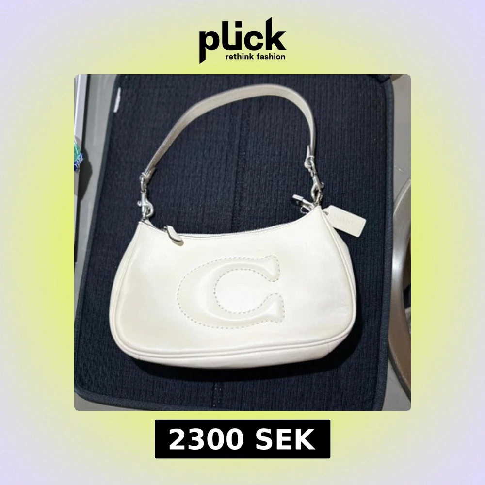 Säljer en oanvänd stilren vit axelväska från Coach med ett stort C broderat på framsidan. Väskan har silverfärgade metalldetaljer, avtagbar axelrem och dragkedja upptill. Perfekt för dig som gillar klassisk och enkel design. Långt band medföljer även. Säljer för 2000 vid snabbaffär!