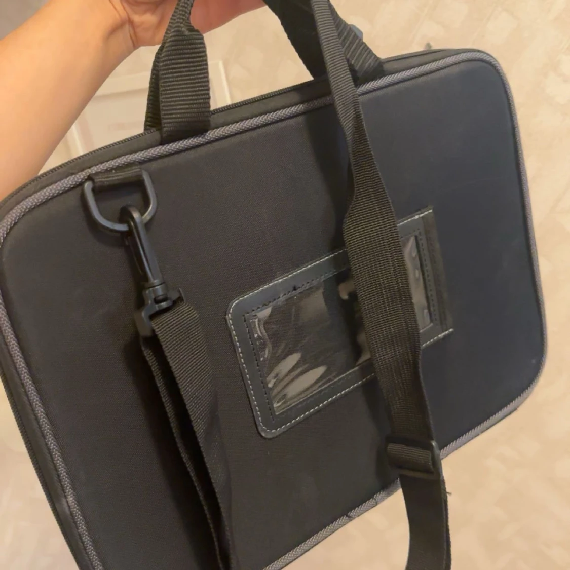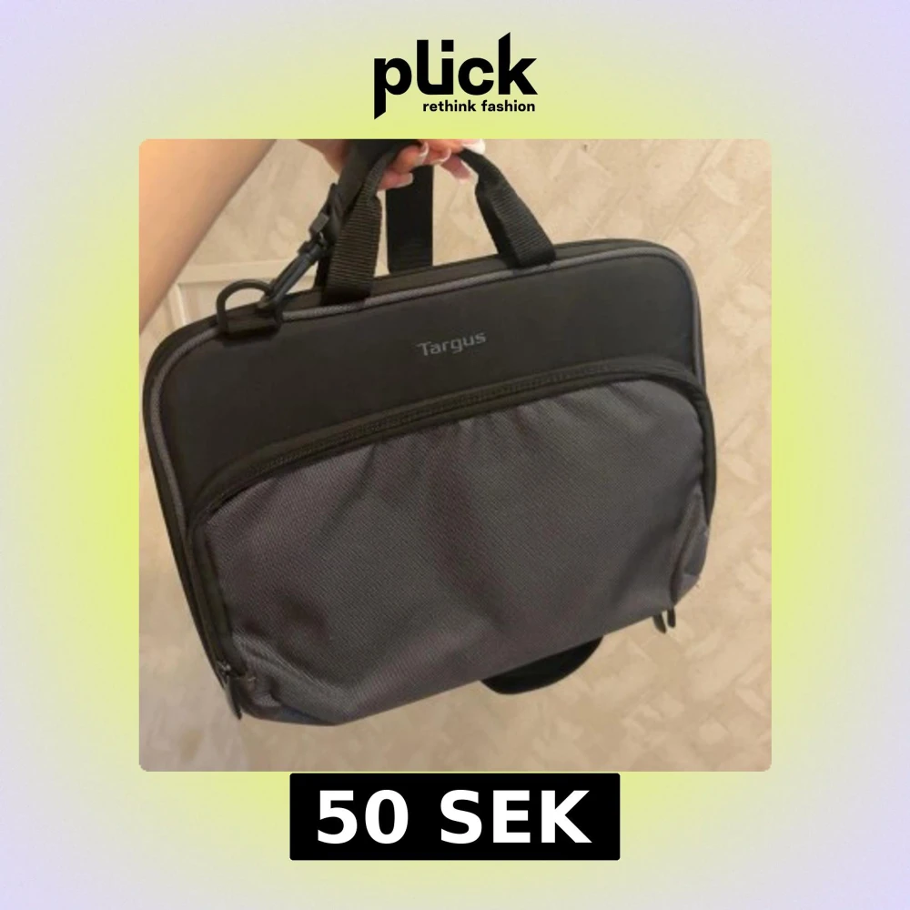 Praktisk datorväska från Targus i svart och grå polyester. Väskan har ett stort huvudfack med dragkedja, ytterficka framtill och justerbar axelrem. Perfekt för att bära laptop och tillbehör. Snygg och stilren design med handtag och ID-ficka på baksidan.