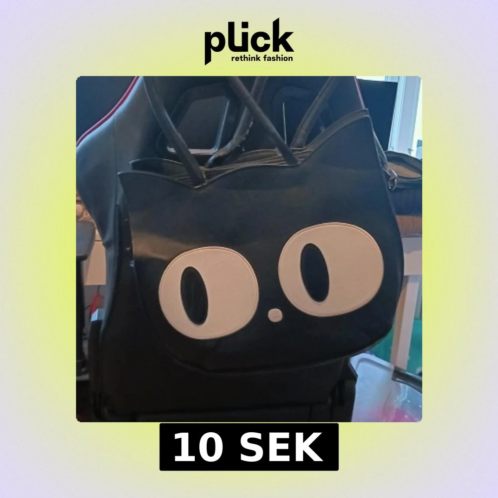 Cool svart axelväska med ett unikt kattmotiv på framsidan. Väskan har två handtag och en justerbar axelrem för bekväm användning. Perfekt för att ge en lekfull touch till din outfit.