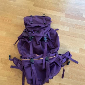 Säljer en lila ryggsäck från Haglöfs, modell ShoSho 6000. Ryggsäcken har flera justerbara remmar och spännen för optimal passform. Perfekt för äventyr och utflykter.