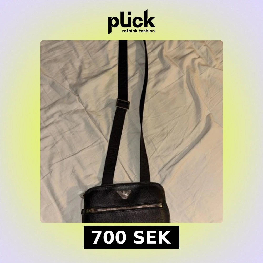 Snygg svart axelväska från Emporio Armani i skinn med justerbar axelrem. Väskan har en dragkedja upptill och en extra ficka med dragkedja på framsidan. Perfekt för att bära dina nödvändigheter med stil.