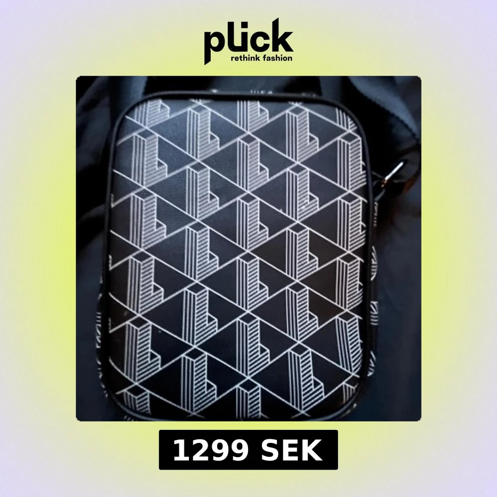 Säljer en svart axelväska från Lacoste med vitt geometriskt mönster och silverfärgad dragkedja. Väskan har en justerbar axelrem och klassisk Lacoste-logga framtill. Perfekt för att bära det viktigaste och ge din outfit en fet look
