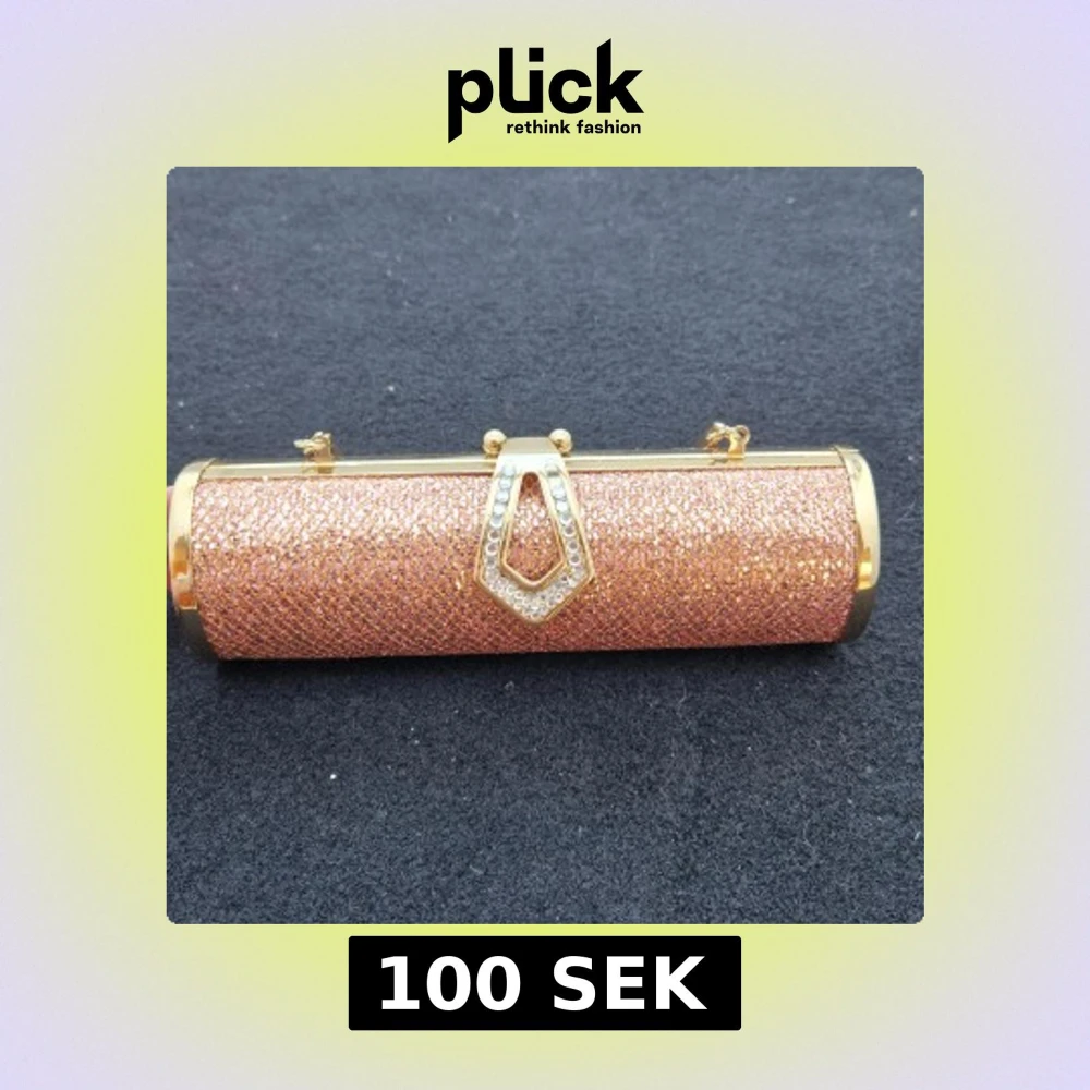 Snygg glittrig kuvertväska i guld med en unik cylinderform. Väskan har en elegant stängning och är perfekt för att ge en touch av glamour till din outfit. Den är kompakt och lätt att bära med sig.
