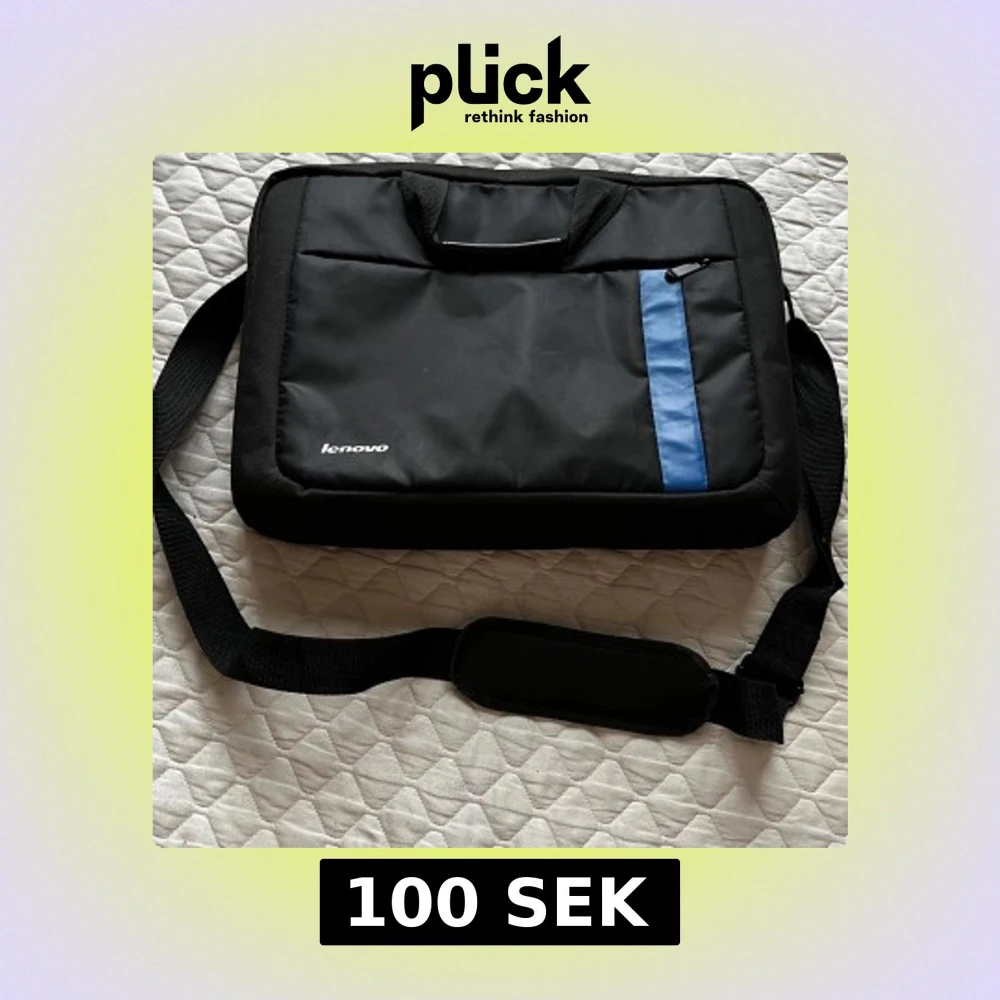 Snygg och praktisk svart datorväska från Lenovo med en blå detalj och dragkedja. Väskan har en axelrem och handtag för enkel transport. Perfekt för att skydda din laptop på språng.