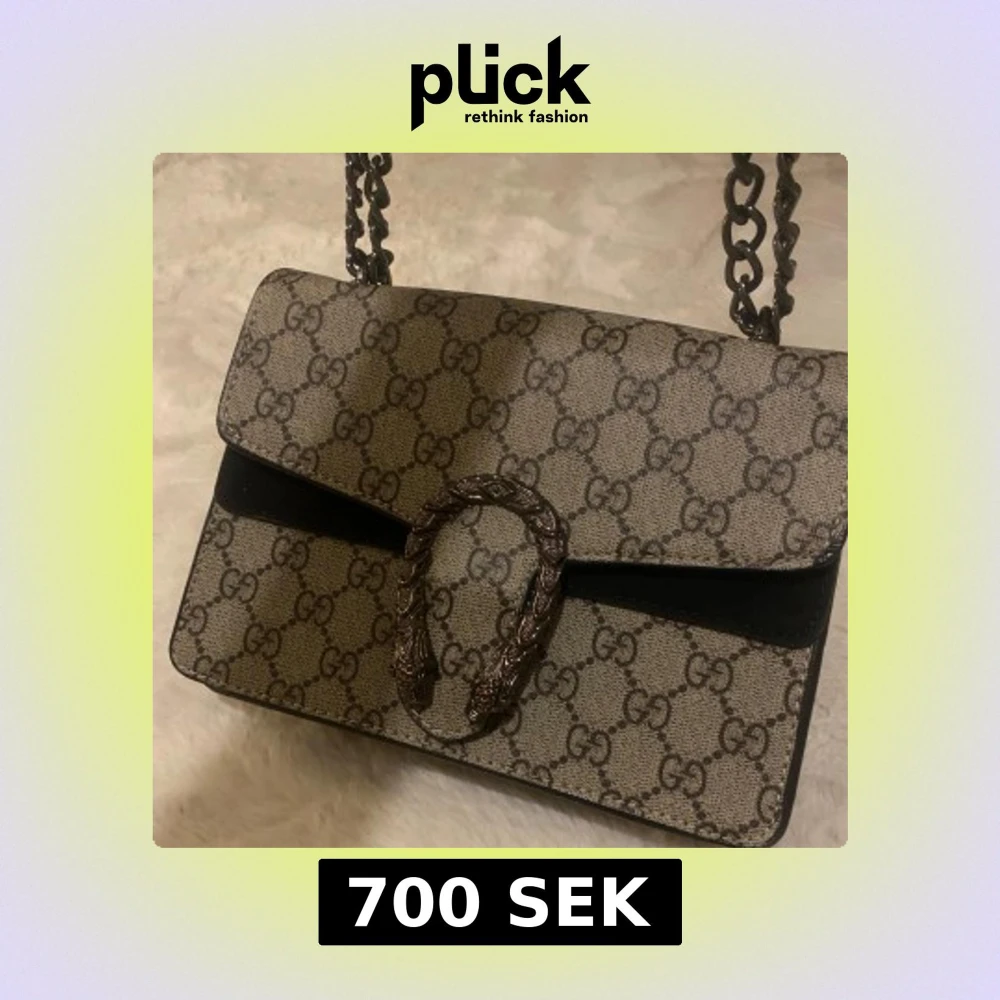 Säljer en stilren axelväska med det klassiska GG-mönstret. Väskan har en elegant kedjerem och ett dekorativt spänne framtill. Perfekt för att ge din outfit en lyxig touch.