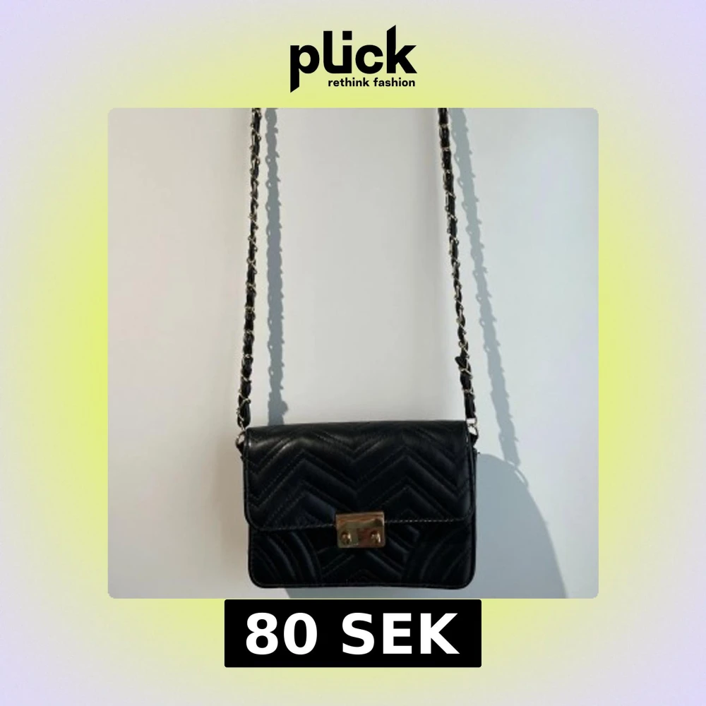 Snygg svart axelväska i quiltat skinnimitation med guldiga detaljer och kedjerem. Har anvönds en del men är i väldigt gott skick💞