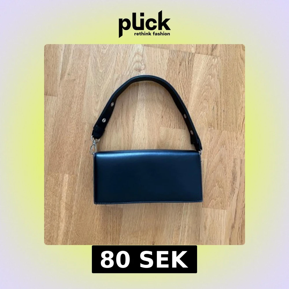 Stilren svart axelväska i rektangulär form med bred axelrem och silvriga metalldetaljer. Väskan har magnetlås och avtagbar rem med snygga nitar. Perfekt för dig som gillar minimalistisk och clean design.