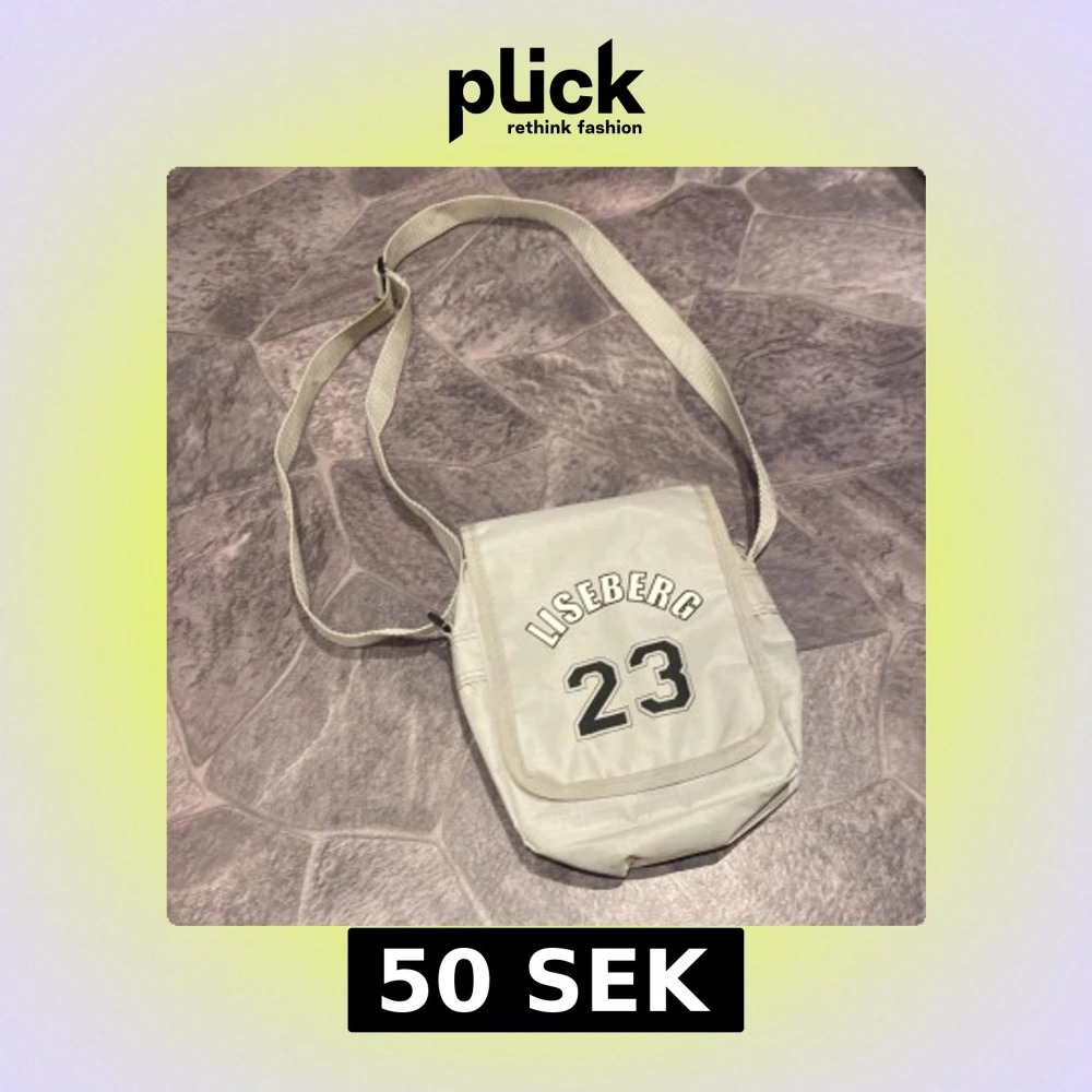 Säljer en beige axelväska med justerbar rem och tryck med texten 'Liseberg 23'. Väskan har en praktisk dragkedja upptill och flera fack inuti för enkel organisering. Perfekt för vardagsbruk eller utflykter.