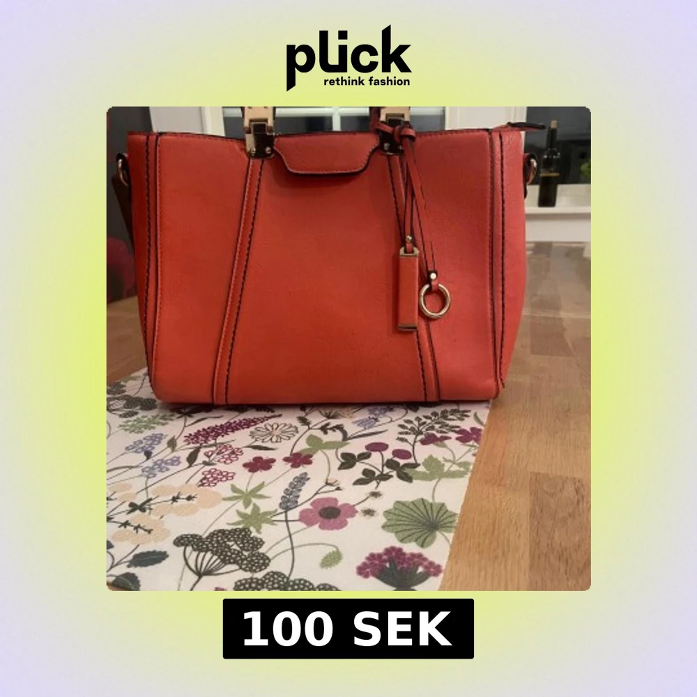 Orange handväska med gulddetaljer