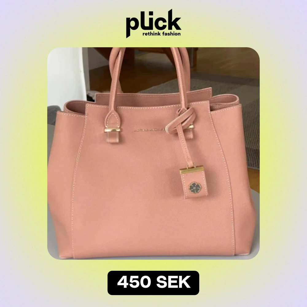 Laura Ashley väska i fin mörk laxrosa färg. Använd en gång och i nyskick. Inuti finns en stor ficka i mitten med blixtlås. Det finns ytterligare en ficka med blixtlås samt två mindre fickor. En avtagbar och justerbar axelrem som är oanvänd, se bild 3