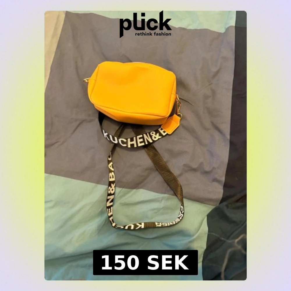 Säljer en snygg gul axelväska från Fashion Bags med justerbar svart axelrem med vit text. Väskan har ett huvudfack med dragkedja och är tillverkad i ett slätt syntetmaterial. Perfekt storlek för det viktigaste och enkel att matcha till olika outfits.