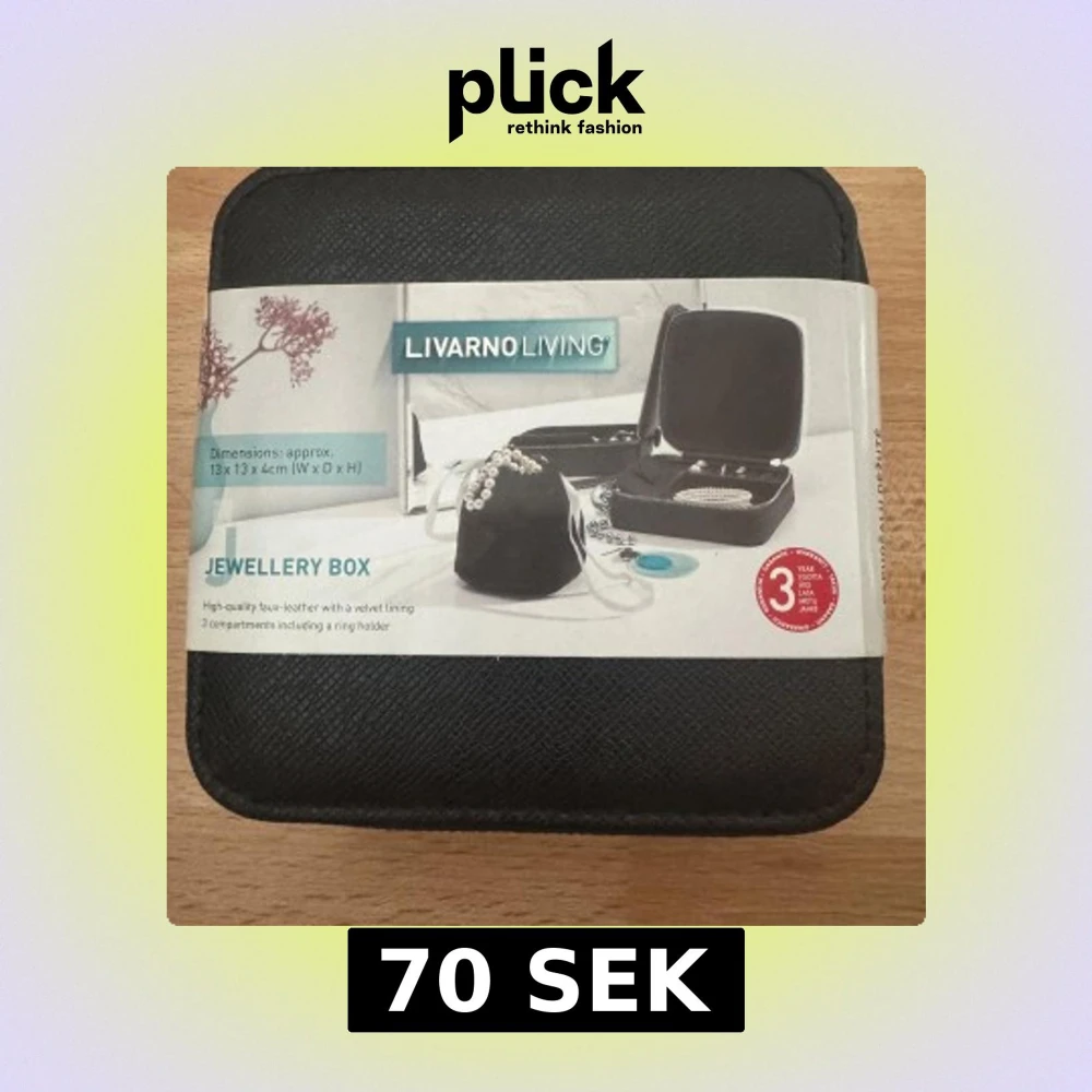 Praktisk och stilren svart smyckesväska i läderimitation med mjukt sammetfoder. Väskan har tre fack, inklusive ringhållare, och en separat sammetsmjuk påse med dragsnöre. Perfekt för att hålla koll på dina smycken när du är på språng. 13x13x4cm, bra att ta med sig på resan.