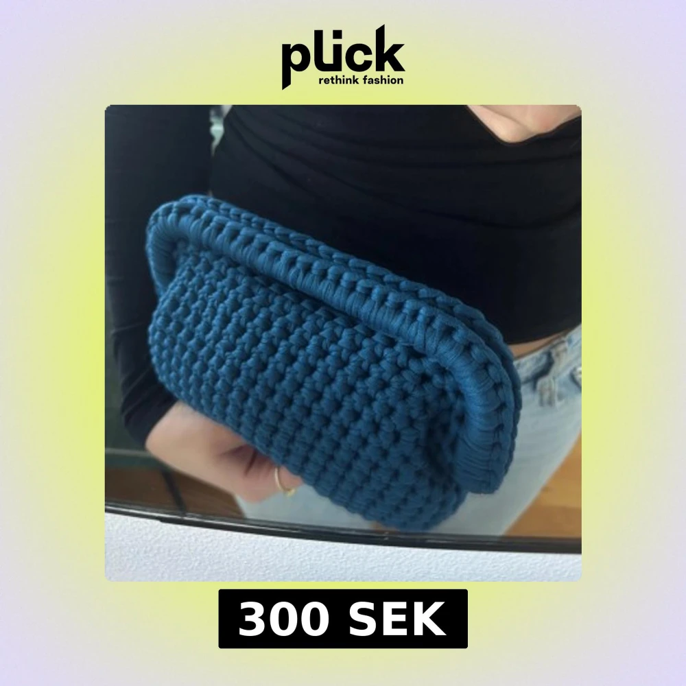 Säljer en blå handvirkad clutch / handväska som jag har virkat!. Väskan är i ett mjukt garn och är väldigt rymlig! Kan bäras i handen som en clutch eller bäras i handtaget. Kan Även Göra Andra Färger / storlekar💕 skriv för mått, olika på vissa 💕