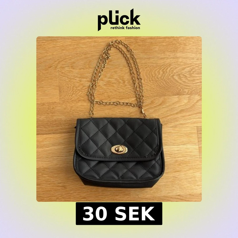 Snygg svart axelväska med quiltat mönster och guldfärgad kedja som axelrem. Väskan har ett klassiskt lock med vridspänne i guld och är tillverkad i syntetmaterial. Perfekt storlek för det viktigaste och ger en chic vibe till din outfit.