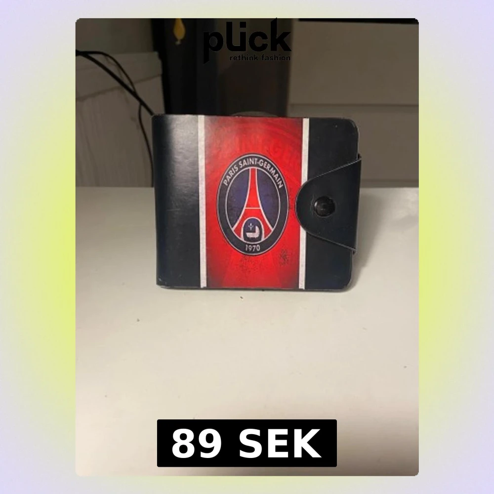Snygg plånbok med Paris Saint-Germain-logga på framsidan i svart och rött. Plånboken har flera kortfack, ett fönster för ID och stängs med tryckknapp. Tillverkad i syntetmaterial och har en sportig look.