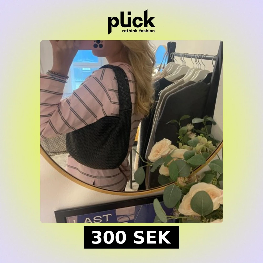 Snygg svart axelväska med flätat mönster. Perfekt storlek. Bra skick. Väskan har en bekväm axelrem och en stilren design som passar till många olika outfits.