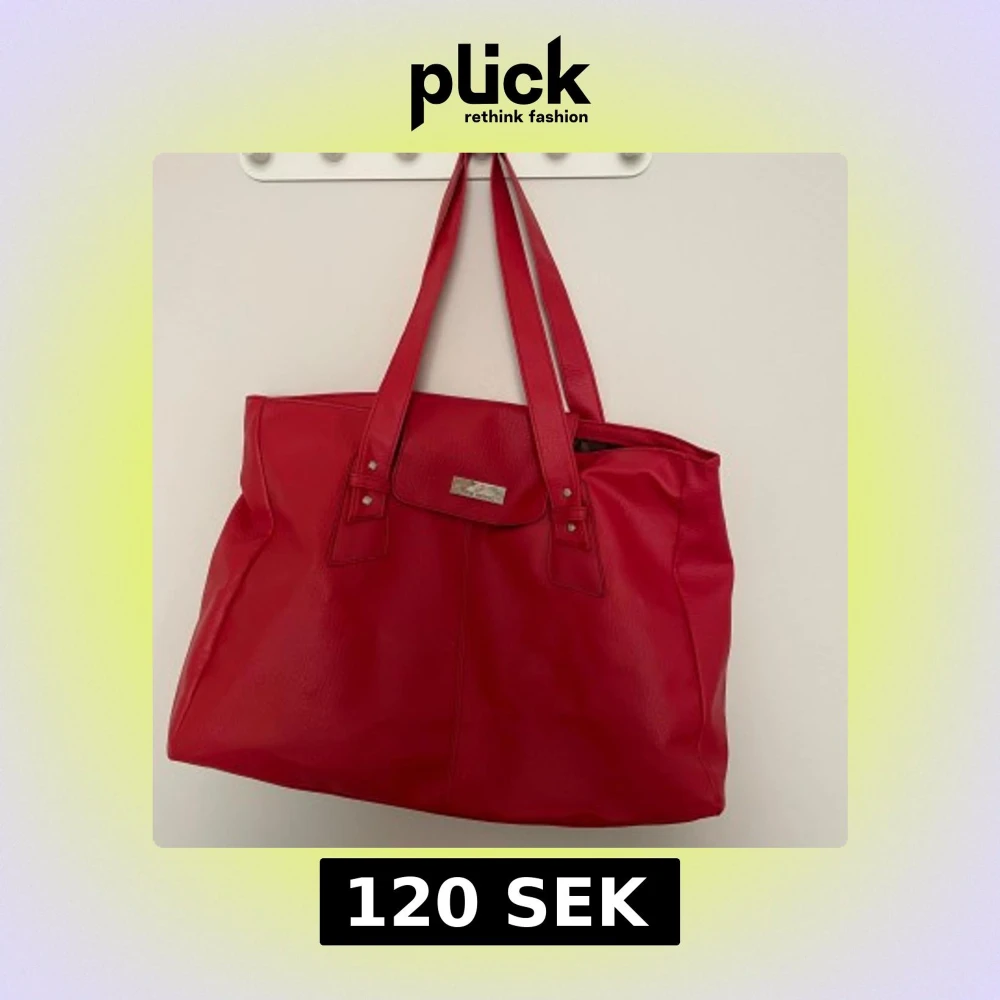 Stor och rymlig röd axelväska med långa handtag och silverfärgad detalj framtill. Väskan har en stilren design och är tillverkad i fejkskinn