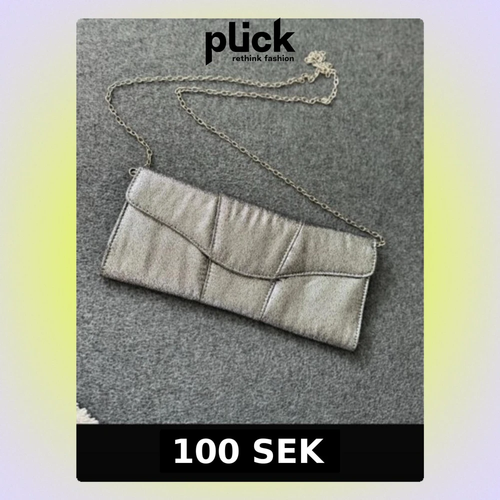 Snygg silvrig kuvertväska från dipp med kedjerem och magnetlås. Väskan har ett metallicskimrande yttertyg och flera fack inuti för småsaker. Perfekt när du vill addera lite extra bling till din outfit.