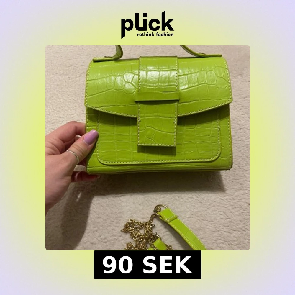 Snygg grön axelväska med krokodilmönster och guldfärgad kedja. Väskan har en stilren design med lock och magnetknäppning. Perfekt för att ge en färgklick till din outfit! Aldrig använt, har bara stått i garderoben i 2år. Kan gå ner i pris