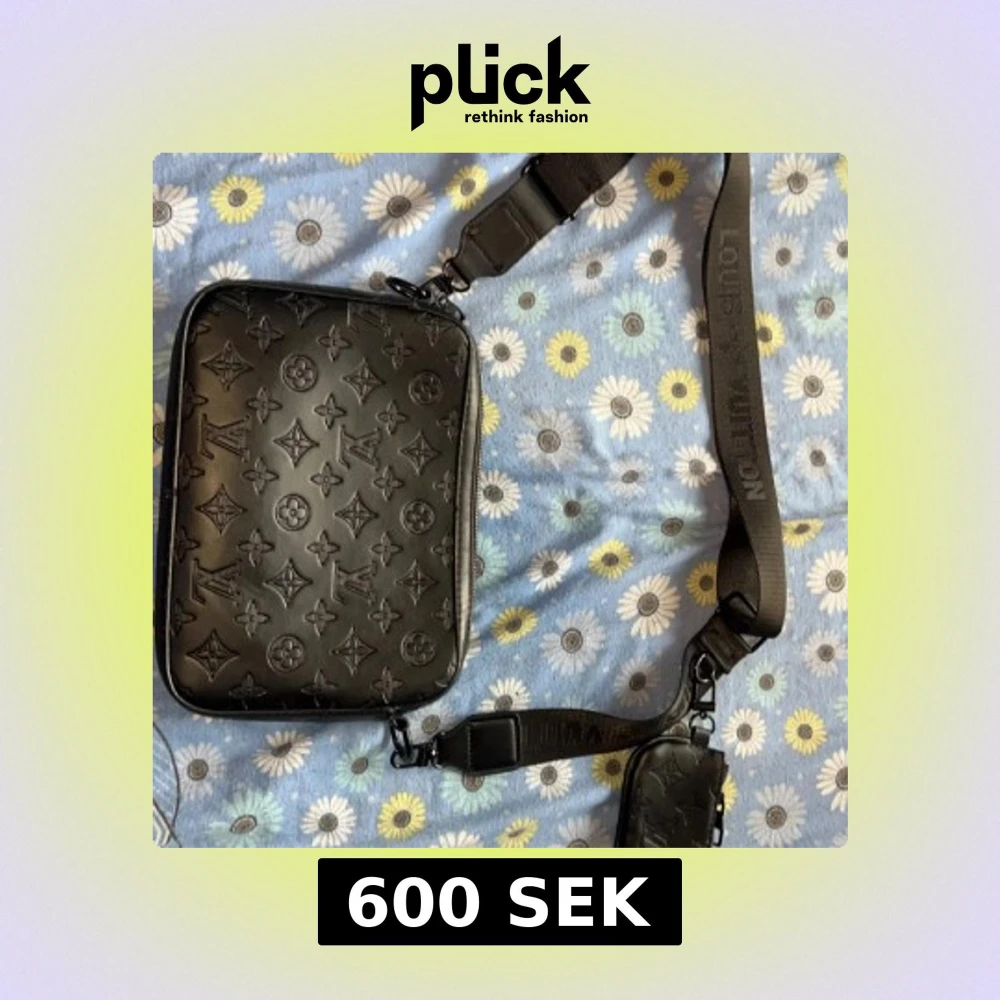 Snygg svart axelväska i skinn med klassiskt monogrammönster. Väskan har justerbar axelrem med logga och en mindre avtagbar ficka. Säljs pågrund av ingen använde