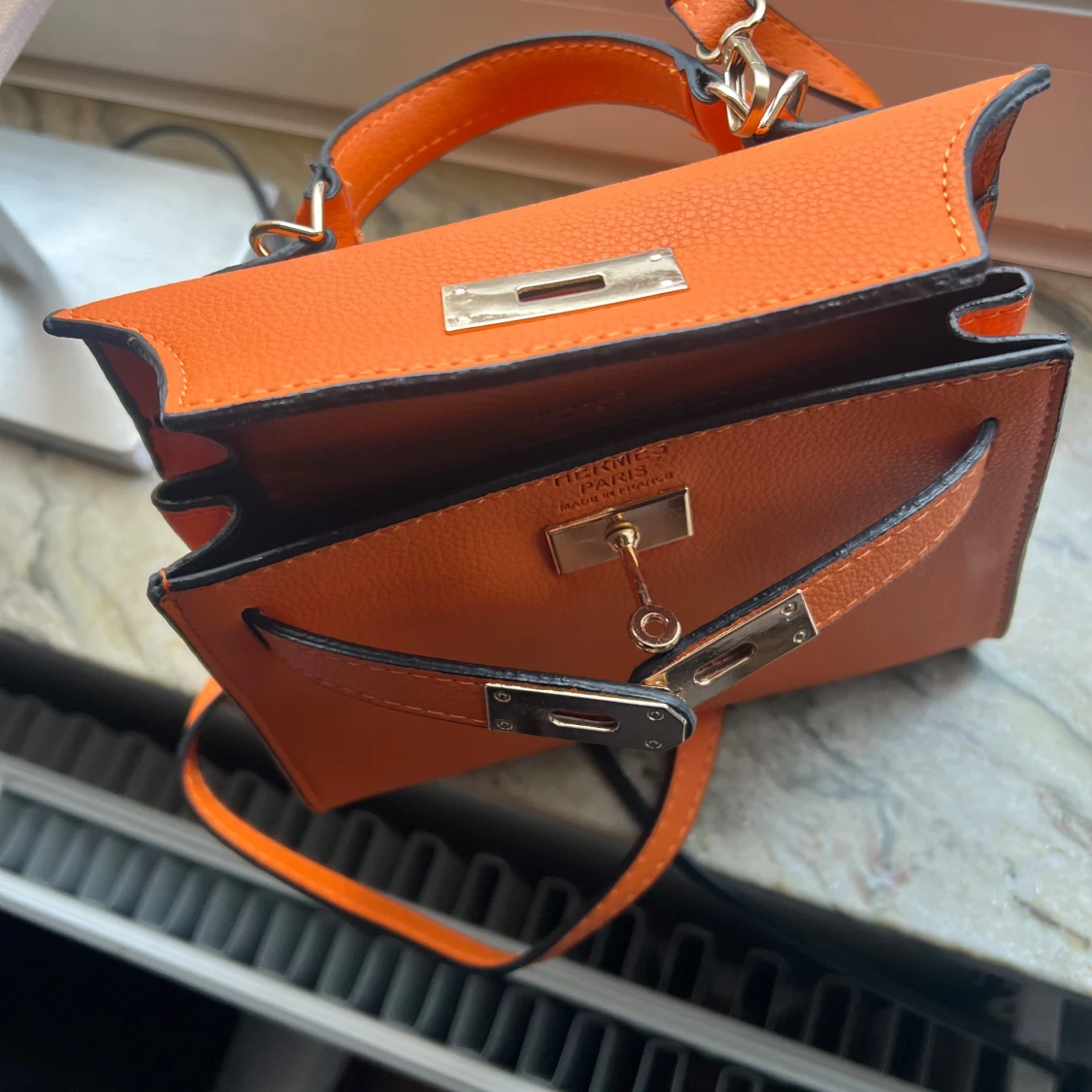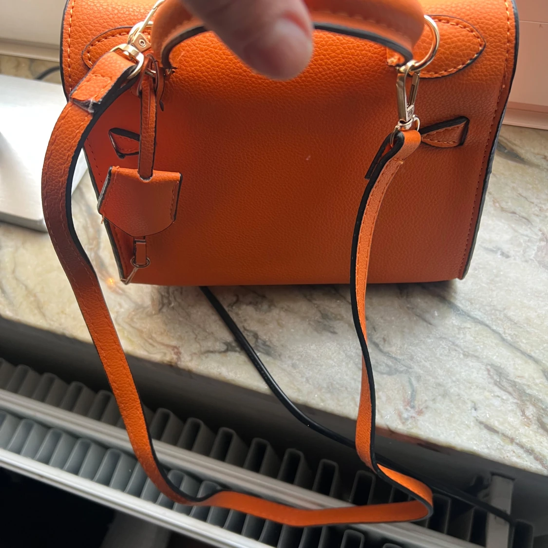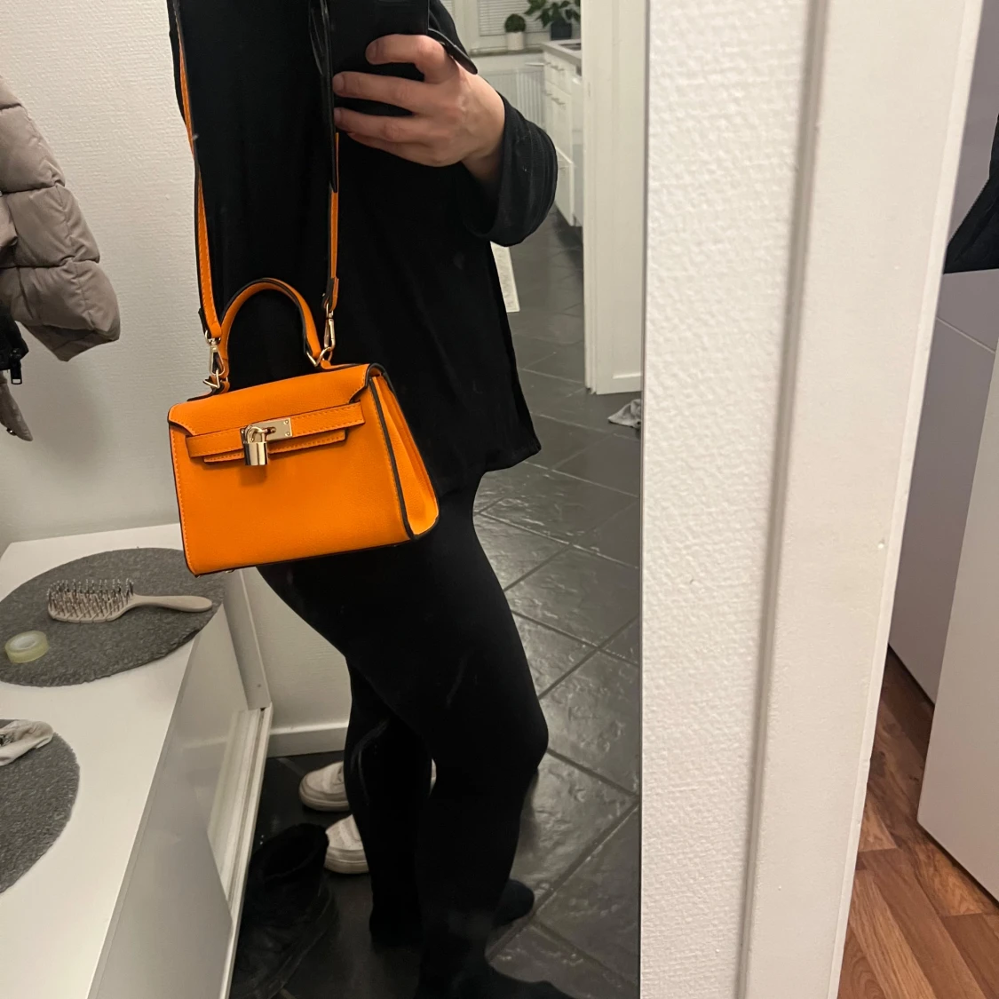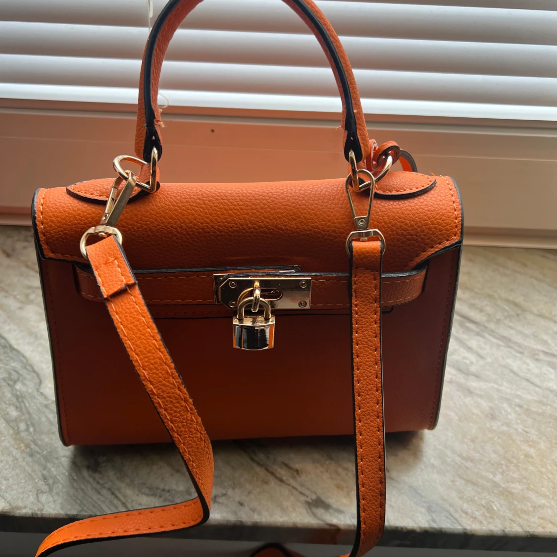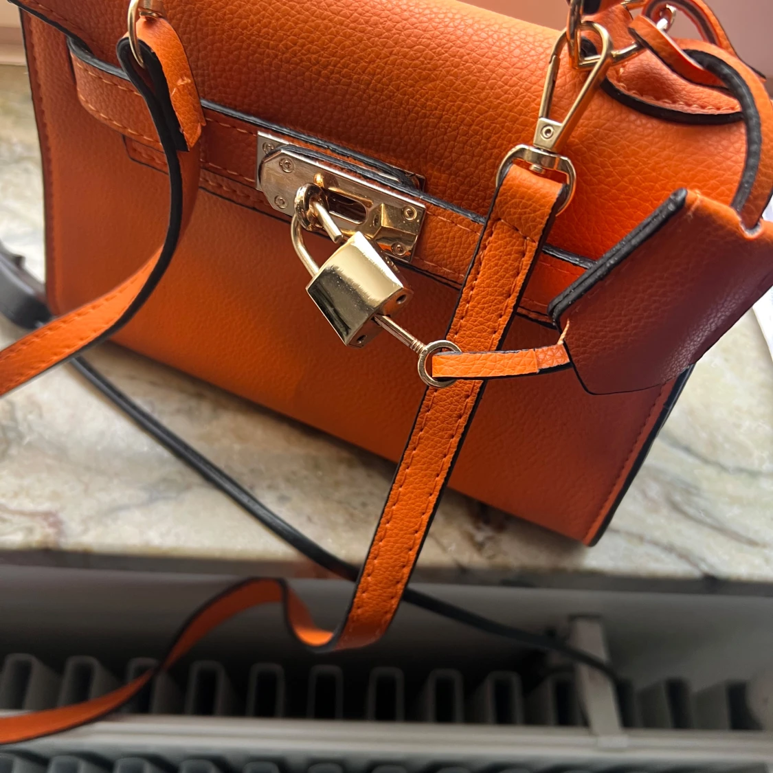 Orange axelväska med låsdetalj
