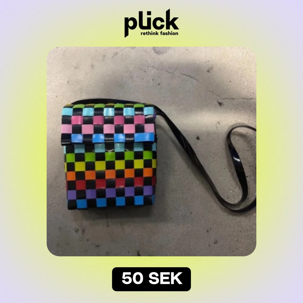 Vettefan vad man kallar denna väska, men en väska är det iallafall. Den är gjord i plast, så om ingen köper den kommer jag att slänga den i moder natur. Valet är ditt😳 Syntolkning: väskan är i de flesta färgerna