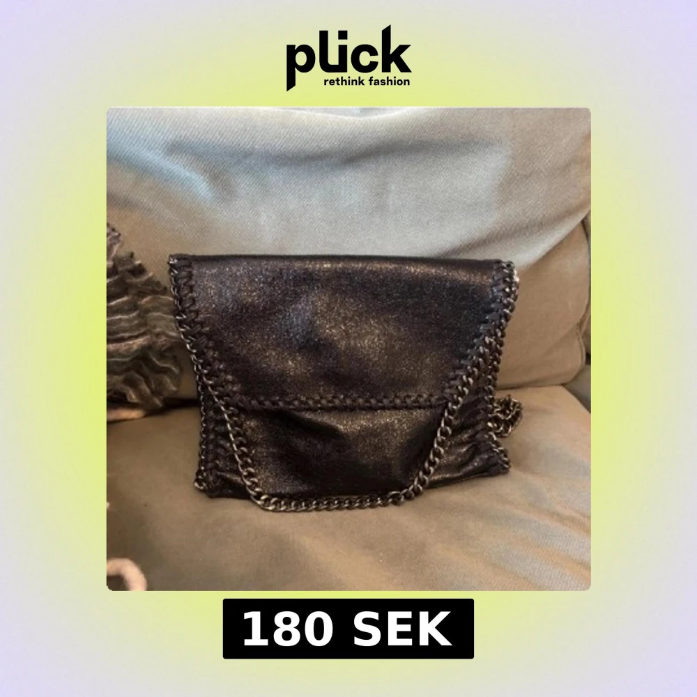 Snygg svart axelväska med kedjedetaljer och flätade kanter. Nyskick
