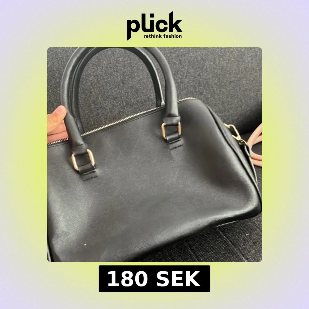 Stilren svart handväska i skinnimitation med två rejäla handtag och avtagbar axelrem. Väskan har guldfärgade metalldetaljer och dragkedja upptill. Perfekt storlek för att få plats med allt du behöver och passar till många olika outfits.