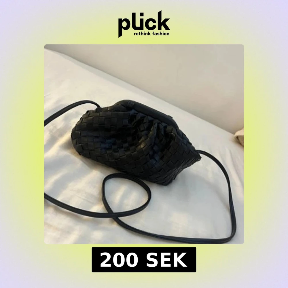 Snygg svart axelväska med flätat mönster. Köpt här på plock men använd kanske 3 gånger 🥰 man knyter banden själv!!!